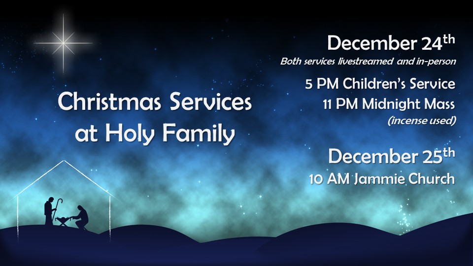 Midnight Mass Christmas Eve Service: December 24th at 11 PM